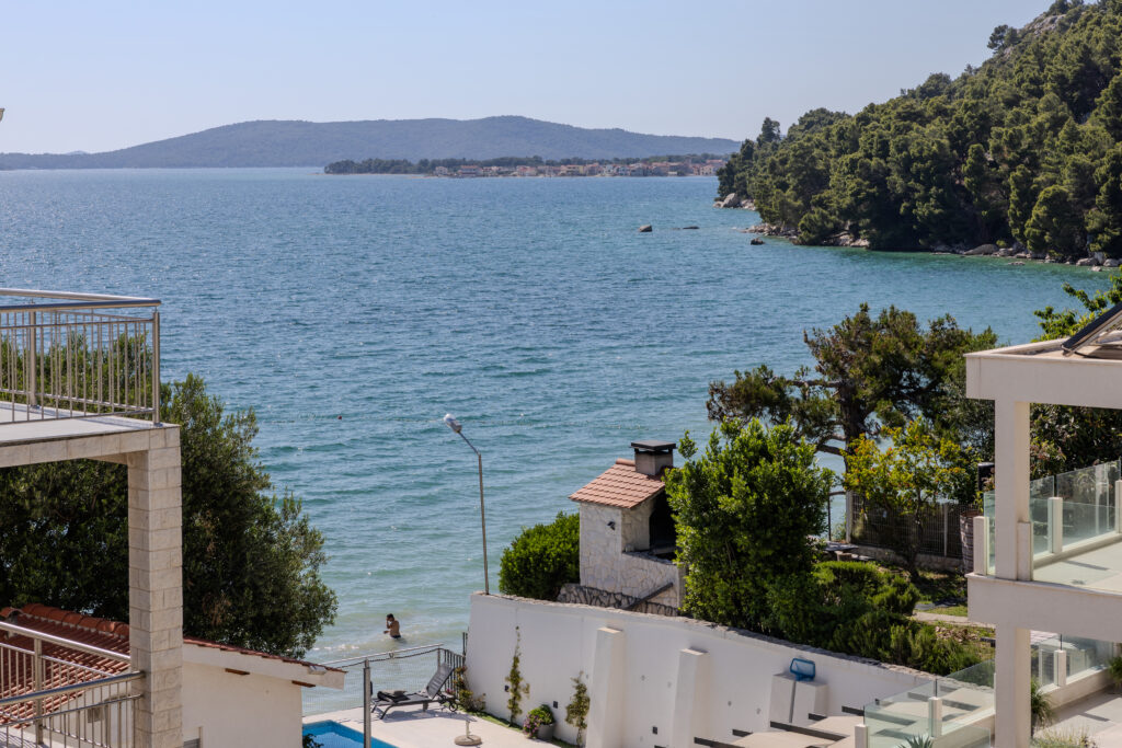 Villa Blue se nachází v klidné a relaxační zóně, kde není žádný dopravní provoz. Za zády má bohatý borovicový les. Stačí odsud sejít pár kroků na pláž a vydat se podél moře po promenádě do centra městečka, kam dojdete asi za 5 minut klidnou chůzí. 200 metrů od domu je jedna z nejkrásnějších plážových restaurací Shark, vyhlášená dokonce v top deseti v celém Chorvatsku.