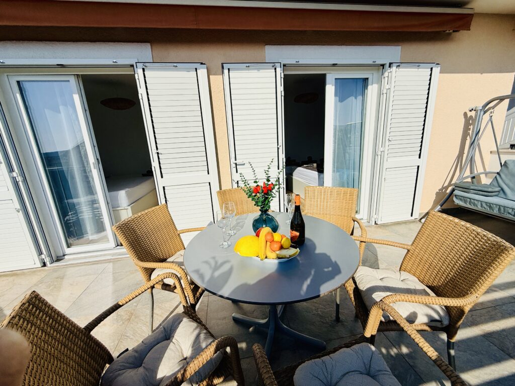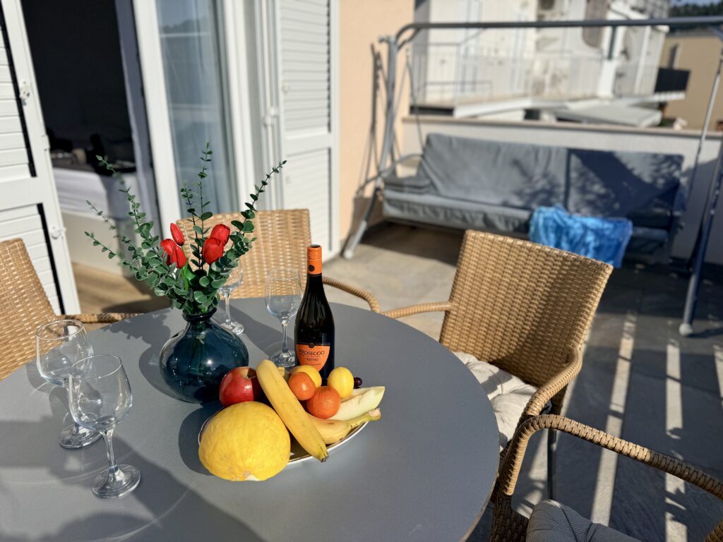 Magnolia 2 je pro všechny, kteří se chtějí probouzet s modrou oblohou za okny a dát si ranní kafe na terase s výhledem na moře. Tenhle apartmán v prvním patře je jako stvořený pro pohodové léto — moderní, krásný, čerstvě po rekonstrukci, prostě funglovka, která čeká na své první hosty.