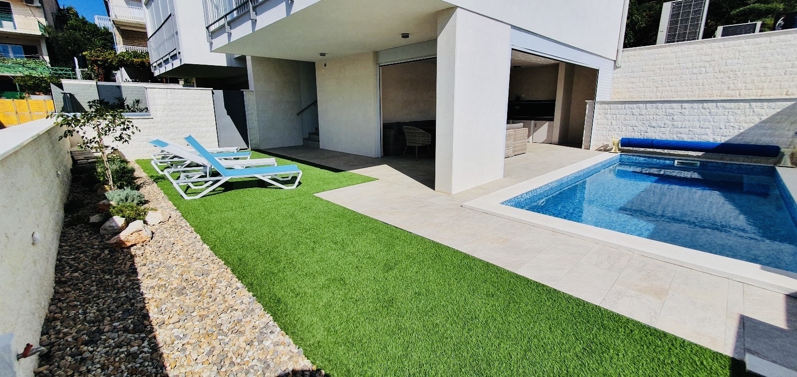 Přátelé Jadranu, představuji Vám naši novinku pro letošní sezónu. Prázdninovou vilu Lucky House v Žaboriči s vlastním vyhřívaným bazénem a zahradou jen 80m od pláže! Luxusní základna pro dvě rodiny, kapacita je 8 osob + dětská postýlka.