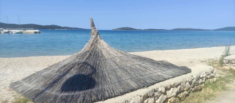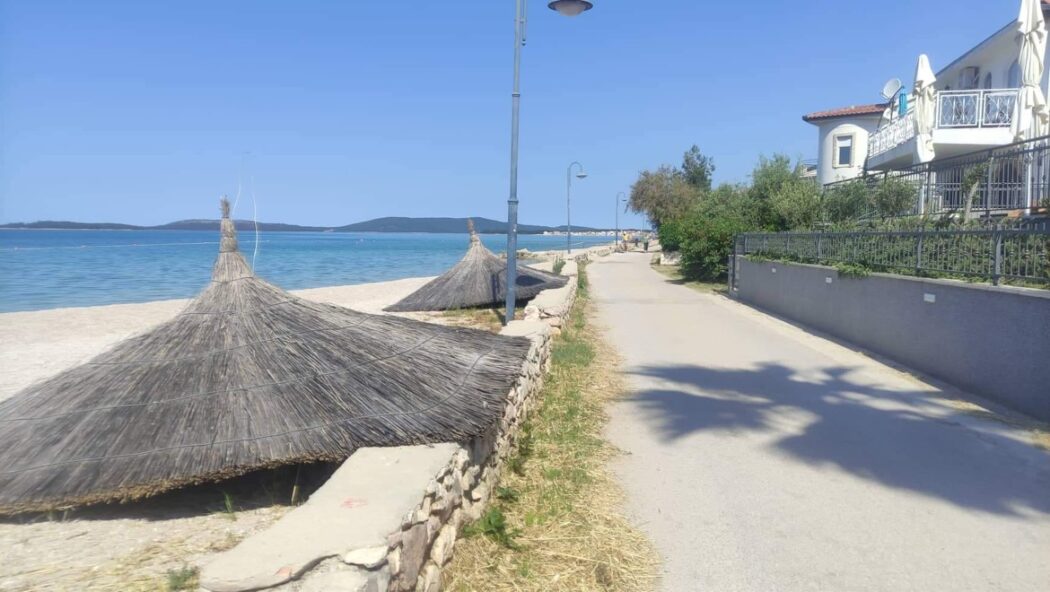 Hurááá! Hlavní pláž v Žaboriči, která je od našich apartmánů vzdálená jen asi 100 metrů, se konečně dočká stínu. Přípravy na sezónu jsou v městečku v plném proudu a součástí je i připevnění nových velkých slunečníků podél celé pláže. Celkem jich bude na pláži šest. Ale nemějte strach, když se Vám nepodaří urvat slunečník, máme v apartmánu stínící stan, který je Vám plně k dispozici po celou dobu pobytu 🙂
